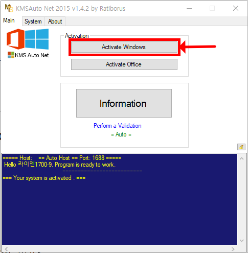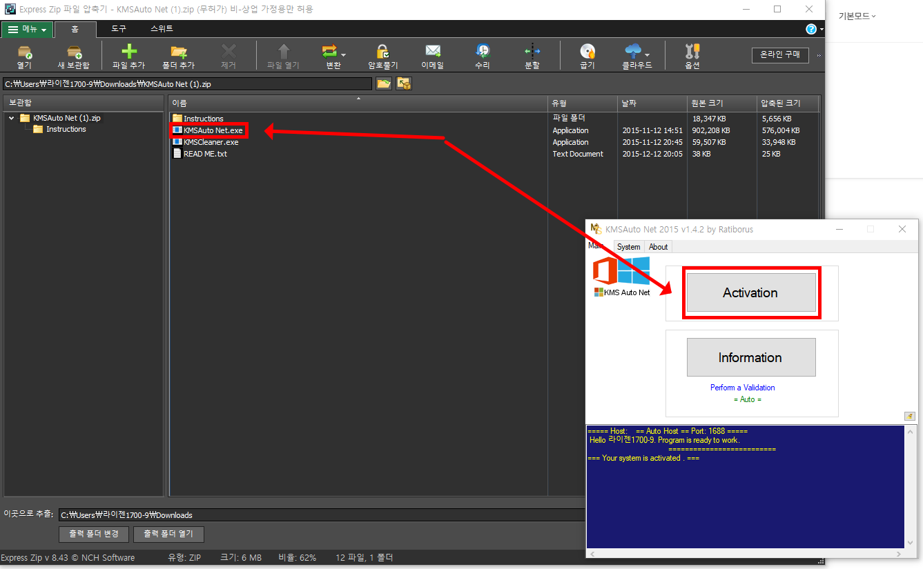 - 압축 해제 후 KMSAuto Net 실행