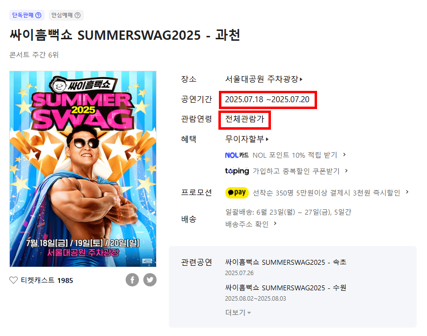 싸이 흠뻑쇼 2025 예매 페이지